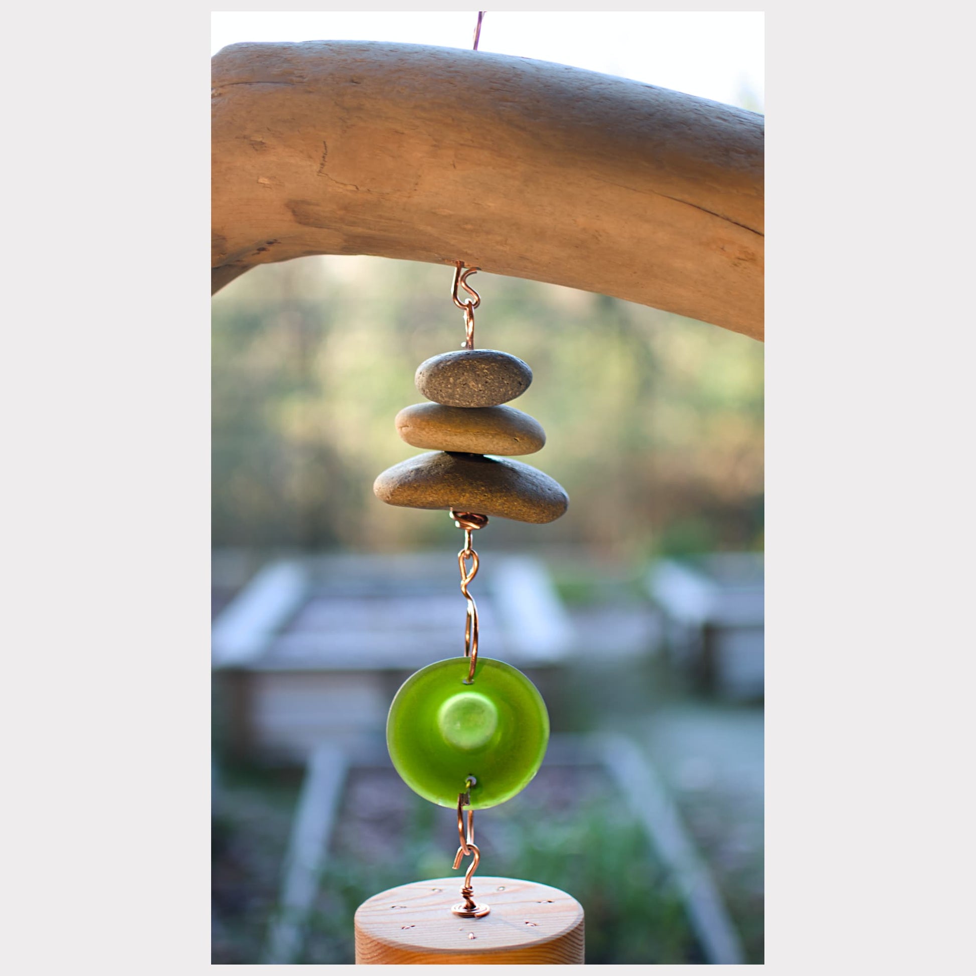 Bring the soothing beauty of the coast to your outdoor space with this handcrafted wind chime. Made from genuine copper and featuring a large, rustic piece of driftwood, naturally weathered by the coast (about 21 inches wide). Beneath the driftwood, three natural beach stones and an artist-made piece of sea glass. Enjoy harmonious, soothing music from seven genuine copper chimes that transforms any garden, deck, or porch into a tranquil retreat.