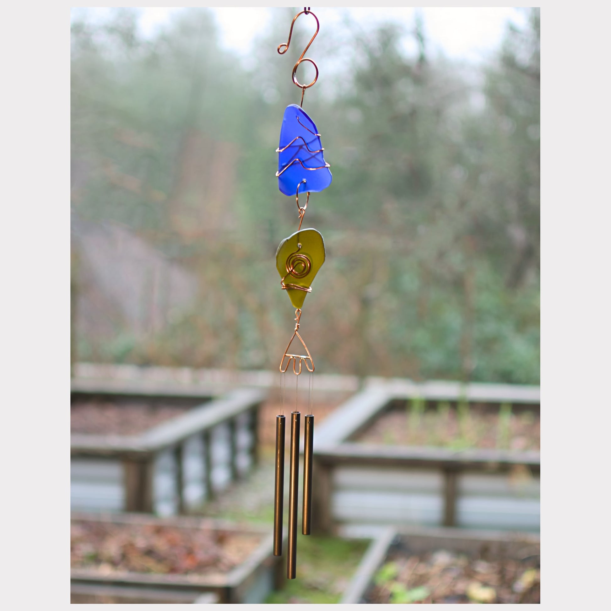 Carillon éolien d'extérieur en verre et cuivre fabriqué à la main